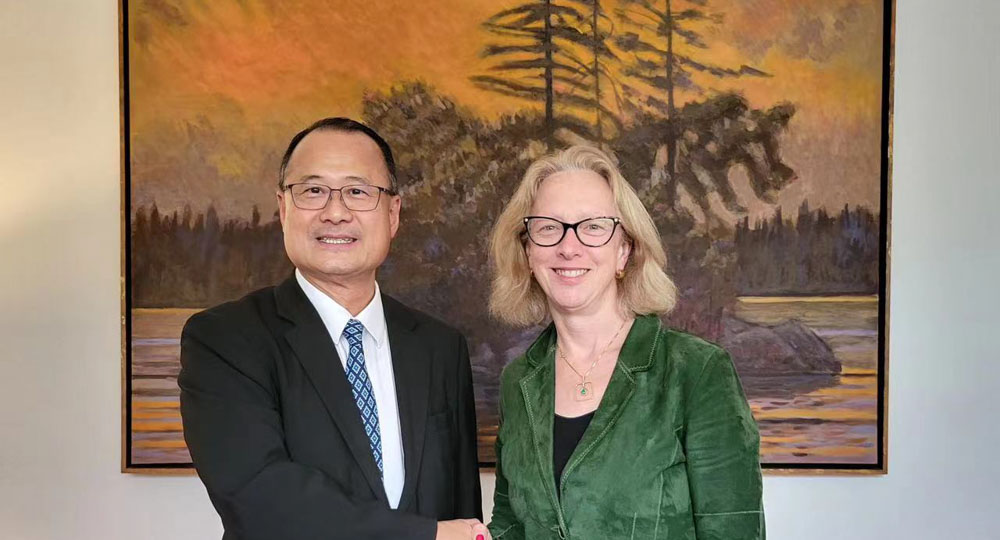 On August 10, Dr. Jonathan Choi, Chairman of Sunwah Group and Jonathan KS Choi Foundation, visited the Canadian Embassy in Beijing and had a discussion with Ambassador Jennifer May. The two sides discussed cultural and educational exchanges and cooperation between the two countries. Both sides look forward to closer ties and cooperation in the future.