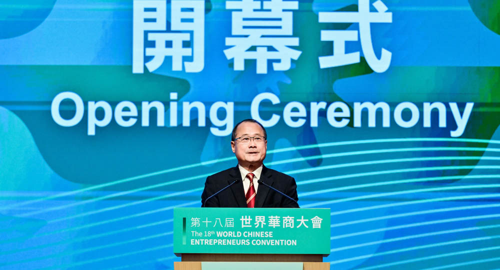 Dr. Jonathan Choi, Standing Committee Member of CPPCC, Chairman of the Chinese General Chamber of Commerce(CGCC), the Guangdong-HK-Macao Bay Area Entrepreneurs Alliance, the Bohai Rim Entrepreneurs Alliance and Sunwah Group, delivered a welcome speech on behalf of the WCEC conveners—the Singapore Chinese Chamber of Commerce & Industry, the CGCC, and the Thai Chinese Chamber of Commerce. Dr. Choi extended congratulations on the opening of the 18th WCEC in Macao and welcomed ethnic Chinese business leaders and distinguished guests from around the world.