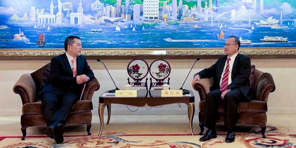 Dr. Jonathan Choi, Standing Committee Member of the National Committee of the Chinese People's Political Consultative Conference (CPPCC), Chairman of the Greater Bay Area Entrepreneurs Alliance, President of the Chinese General Chamber of Commerce (CGCC) in Hong Kong, Chairman of the Beijing-Tianjin-Hebei-Bohai Rim Entrepreneurs Alliance, and Chairman of Sunwah Group, recently held talks with Chinese Ambassador to Hungary Gong Tao during the latter's visit to the CGCC.