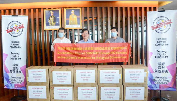 In April, Sunwah donated medical face masks to the Penang State Government of Malaysia. Chief Minister of Penang Mr. Chow Kon Yeow received on behalf of the Malaysian Government.