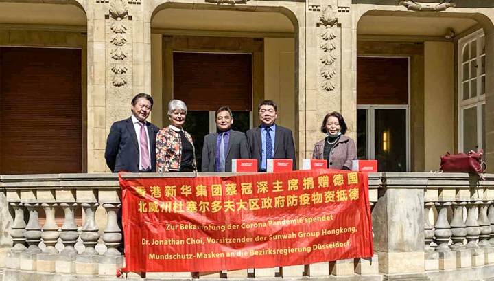 Dr.Jonathan Choi showed his concern and support to the government of Germany, and donated FFP2 face masks to Dusseldorf on 16 April. The City's chairman Mrs. Radermacher received on behalf of the City.