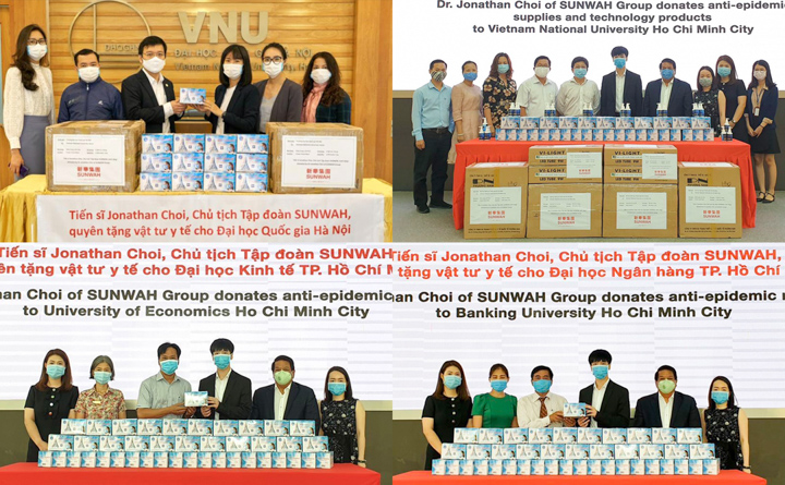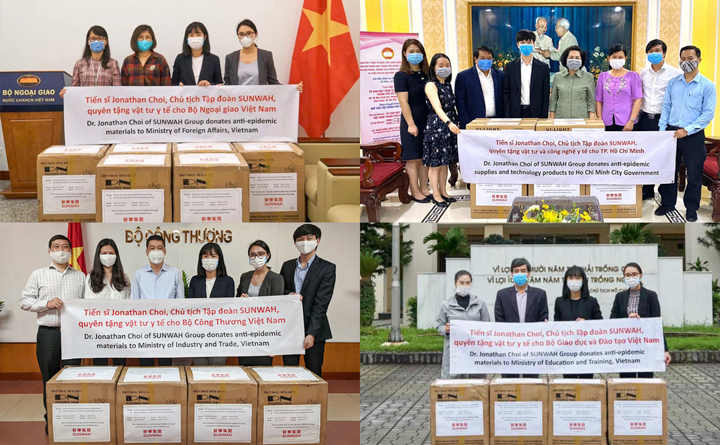 Sunwah donated anti-epidemic supplies to the Vietnam Ministry of Foreign Affairs, Ho Chi Minh City government, Ministry of Industry and Trade, the Ministry of Education in Hanoi.