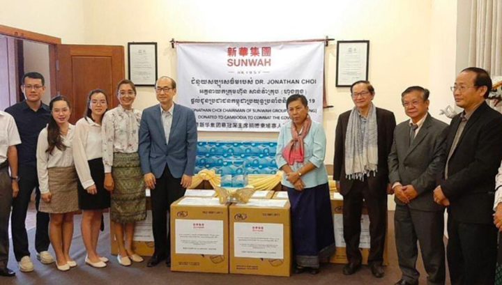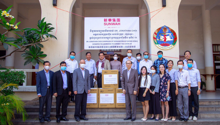 From 24 to 26 March, Sunwah donated 50,000 medical face masks to the Cambodia Ministry of Education, Youth and Sports, Ministry of Culture and Arts and the Cambodia National University of Management. Sunwah had invested in Cambodia for more than 24 years. Earlier, Sunwah had committed a donation of US$500,000 to support Cambodia's educational and technological developments.