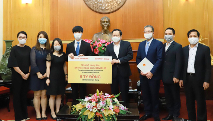 A ceremony was held on 28 April at the Vietnam Fatherland Front's Hanoi Office to mark the donation of VND 5 billion to the Government of Vietnam by Dr. Jonathan Choi of Sunwah Group to support Vietnam's fight against COVID.