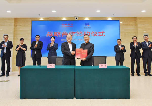 On 6 June, Sunwah's Chairman Dr. Jonathan Choi signed a strategic co-operation agreement with the Party Secretary and Managing Director of the Harbin Electric Corporation Mr. Si Ze-fu at its Harbin Jiangbei Science Research Centre. Prior to the ceremony, Dr. Choi and delegation accompanied by Mr. Si Ze-fu made a visit tour to the historic and cultural exhibition hall of the Harbin Electric Corporation.